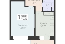 Однокомнатная квартира в ЖК "Онегин", общей площадью 40,15 кв.м.